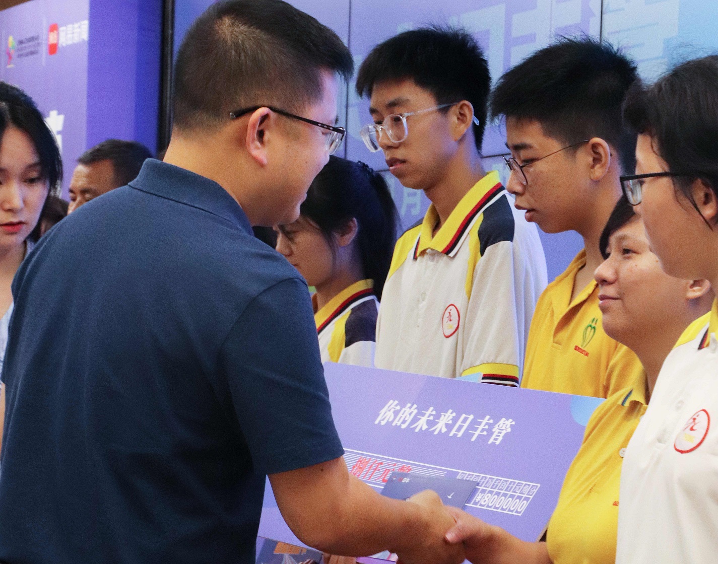 10位優(yōu)秀的學(xué)子和家長代表也來到了發(fā)布會(huì)現(xiàn)場,日豐集團(tuán)副總裁鄭立賢為他們發(fā)放助學(xué)金和終面直通卡,日豐江門總代理林鐵則為同學(xué)們發(fā)放開學(xué)福袋。此外,江門禮樂中學(xué)副校長陳罩添和優(yōu)秀受捐學(xué)生代表張同學(xué)對日豐集團(tuán)表達(dá)了感謝。