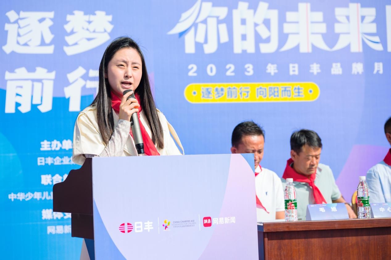 隨后,冕寧縣若水鎮(zhèn)人民政府副鎮(zhèn)長(zhǎng)王佳發(fā)言致辭,傳達(dá)出她對(duì)于日豐品牌月公益行動(dòng)的堅(jiān)定支持和欽佩之情。她坦言,偶然的公益或許是心血來潮,但長(zhǎng)期的公益之行,必是大愛所在。日豐品牌月公益行動(dòng)已經(jīng)持續(xù)多年,遍及涼山的大山小村,為學(xué)生們帶來了溫暖和希望。王副鎮(zhèn)長(zhǎng)期望學(xué)生們能夠懷著感恩之心,努力學(xué)習(xí),將日豐集團(tuán)的大愛精神傳承下去,成為國(guó)家棟梁之才。
